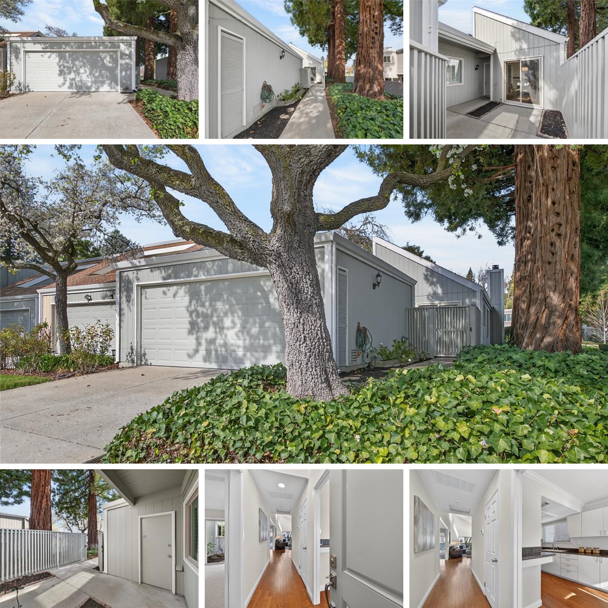 Single-story end unit in the desirable Stoneridge Townhome community, surrounded by mature trees and lush greenbelts creating a serene, Tahoe-like setting. This peaceful retreat is just steps from three seasonally heated pools, tennis and pickleball courts, and the community clubhouse. The home features a freshly painted interior, newer lighting, and hardwood floors throughout. The eat-in kitchen offers granite countertops, recessed LED lighting, and stainless steel appliances, including a refrigerator and built-in microwave. Vaulted ceilings highlight the dining and family rooms, along with an atrium, fireplace, and sliding glass door opening to the greenbelt—perfect for indoor-outdoor living. The spacious primary bedroom includes an updated marble bath, complemented by an updated marble hall bath. Additional highlights include a two-car garage with storage and a Maytag washer and dryer. Ideally located near BART, shopping, dining, award-winning schools, and with convenient access to I-680 and I-580. HOA dues include fire insurance, exterior maintenance, water, sewer, and community amenities.